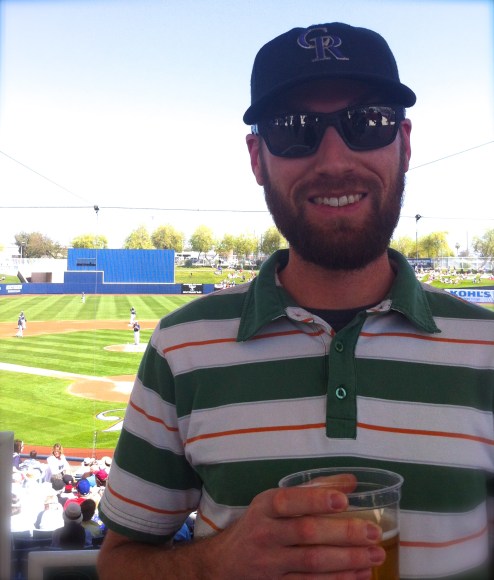 When the ladies of Beards of Denver headed down to Scottsdale, Arizona to catch some of the Colorado Rockies’ spring training games, we were pleasantly surprised to also catch a great beard from (where else?) Denver! Meet Jeff, who we encountered at a Rockies vs. Brewers game on a sunny Sunday in Phoenix. Jeff’s lovely wife Erica is a big fan of his beard; he usually shaves during baseball season, but with her encouraging he’s likely to keep his beard all season long (it’s sure to be the Rockies good luck charm, we’re certain). Jeff and Erica live in HIghlands and will definitely be attending Opening Day this coming Friday. Jeff’s favorite part of his beard is the beautiful girl it got him, and Erica says all her girlfriends admire Jeff’s beard, too. Obviously, we like that those ladies share such good taste!